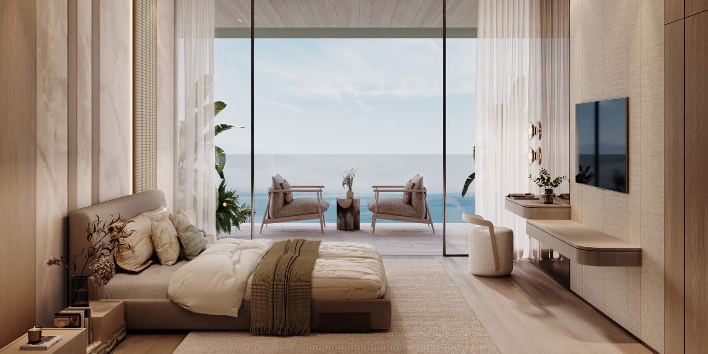 Each residence at Soleva reflects precision craftsmanship and material mastery. Spacious layouts feature walk-in closets in larger homes, private balconies, and floor-to-ceiling glass framing uninterrupted sea views. Refined joinery, natural finishes, and curated furnishings enhance a sense of understated sophistication. The open, light-filled interiors blur the boundaries between indoor comfort and the coastal landscape, offering a seamless living experience defined by tranquillity and elegance.